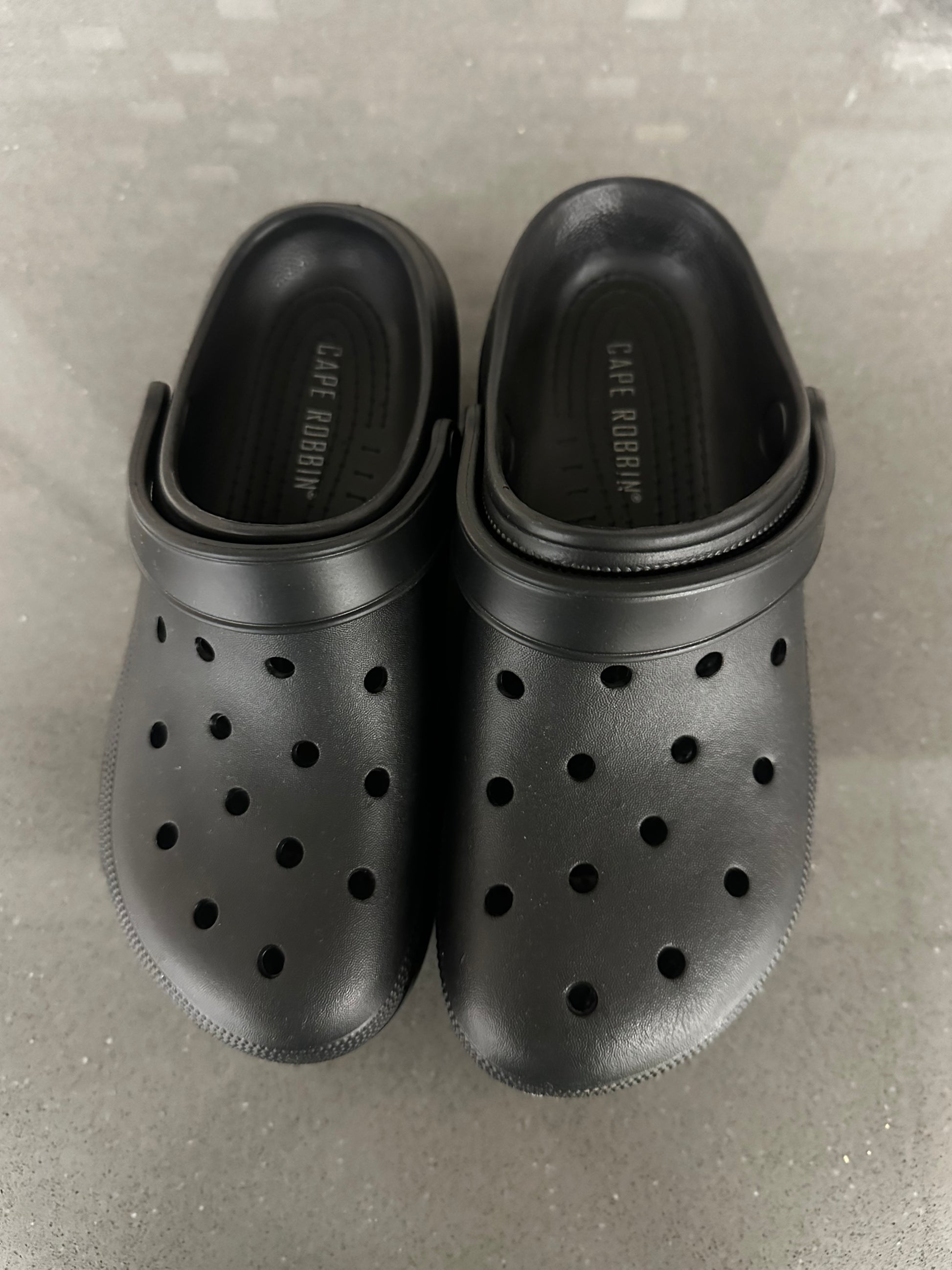 The Black Platform Clogs offer a sleek, modern silhouette with enhanced comfort and durability. Crafted with a sturdy platform sole, these clogs provide reliable support and a subtle lift, perfect for extended wear. Their minimalist black design ensures versatility, making them an essential addition to any wardrobe for both casual and professional settings. Experience the blend of style and function with these expertly designed platform clogs.